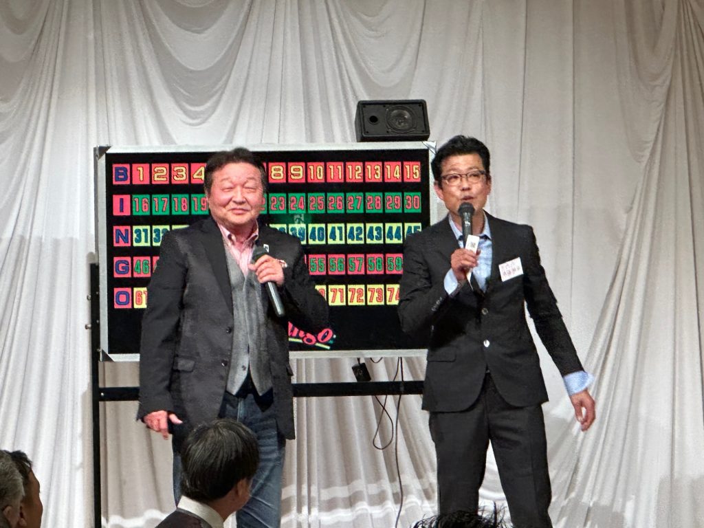 B-1グランプリin四日市の報告があり、大好評のイベント『ビンゴゲーム』今年の1等3万円は強運の持ち主 井上雅文会員がゲット!からの宝くじ争奪じゃんけん。総取りはいつもお世話になっているホテルスタッフさんでした。