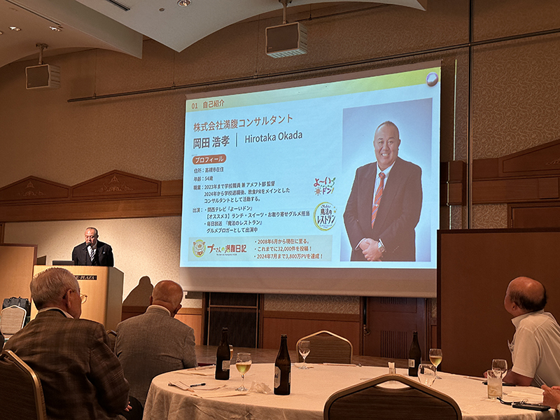 と題し、講師にグルメブロガーの岡田浩孝氏をお迎えし会員35名の参加で開催されました。
