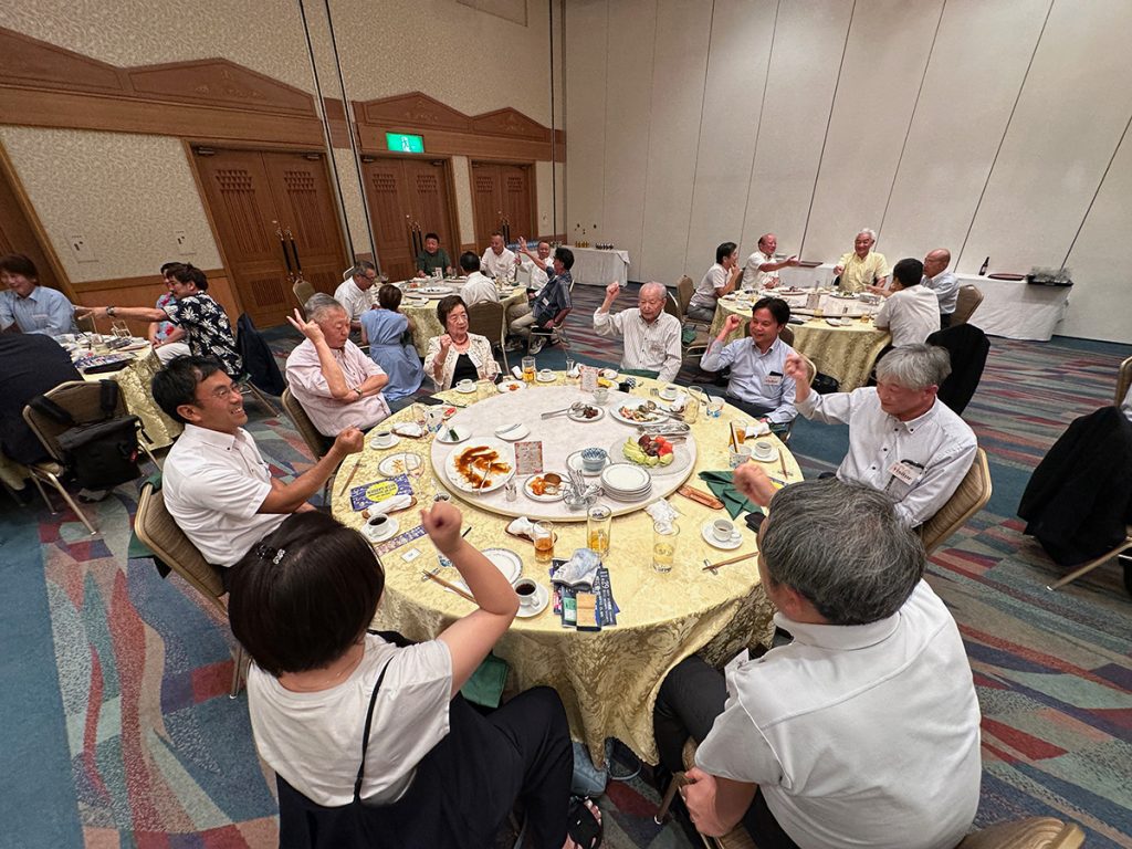 乾杯の発声は古志親睦委員長。グラスを掲げた瞬間、会場は一気に和やかな雰囲気に包まれました。
