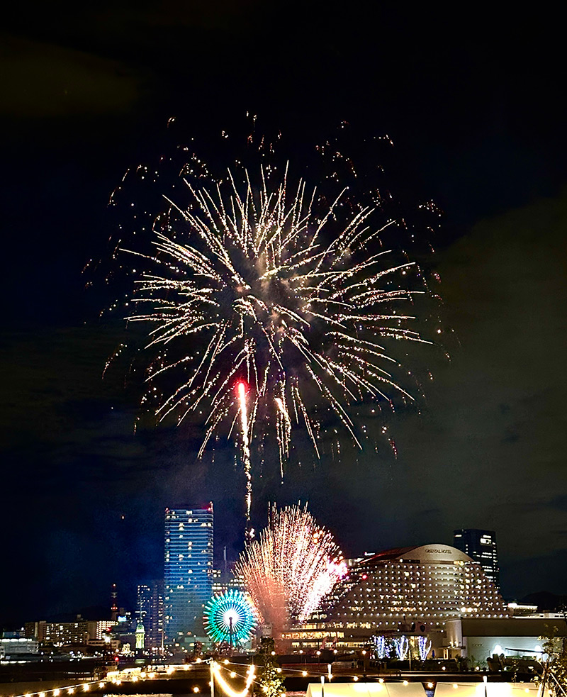 開放的で洗練された雰囲気の中、みなとHANABIの初日を間近に楽しむことができ、