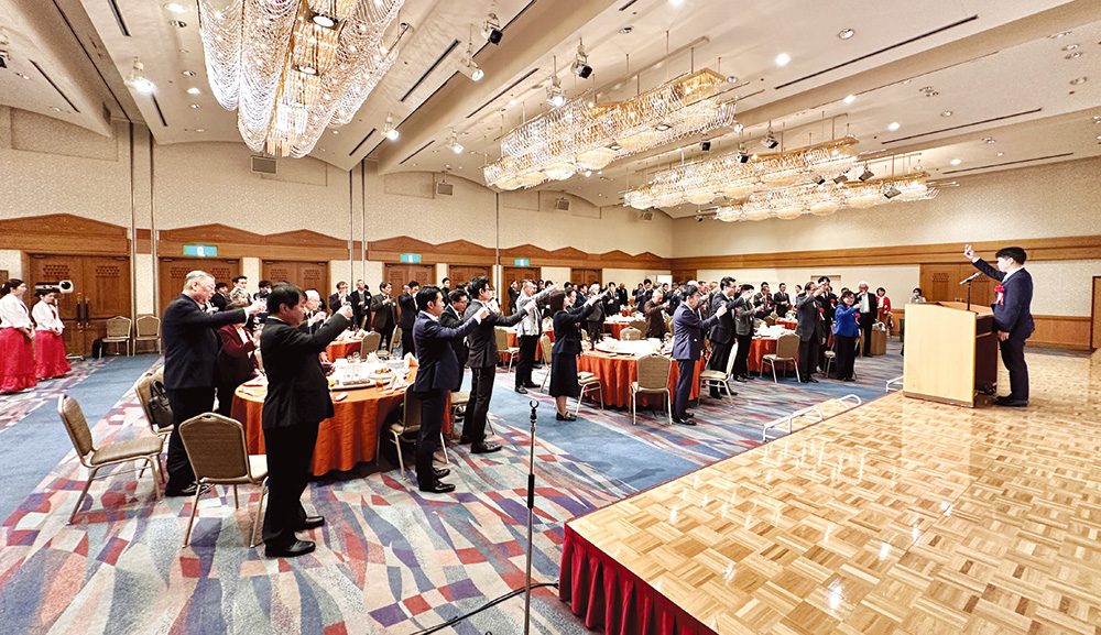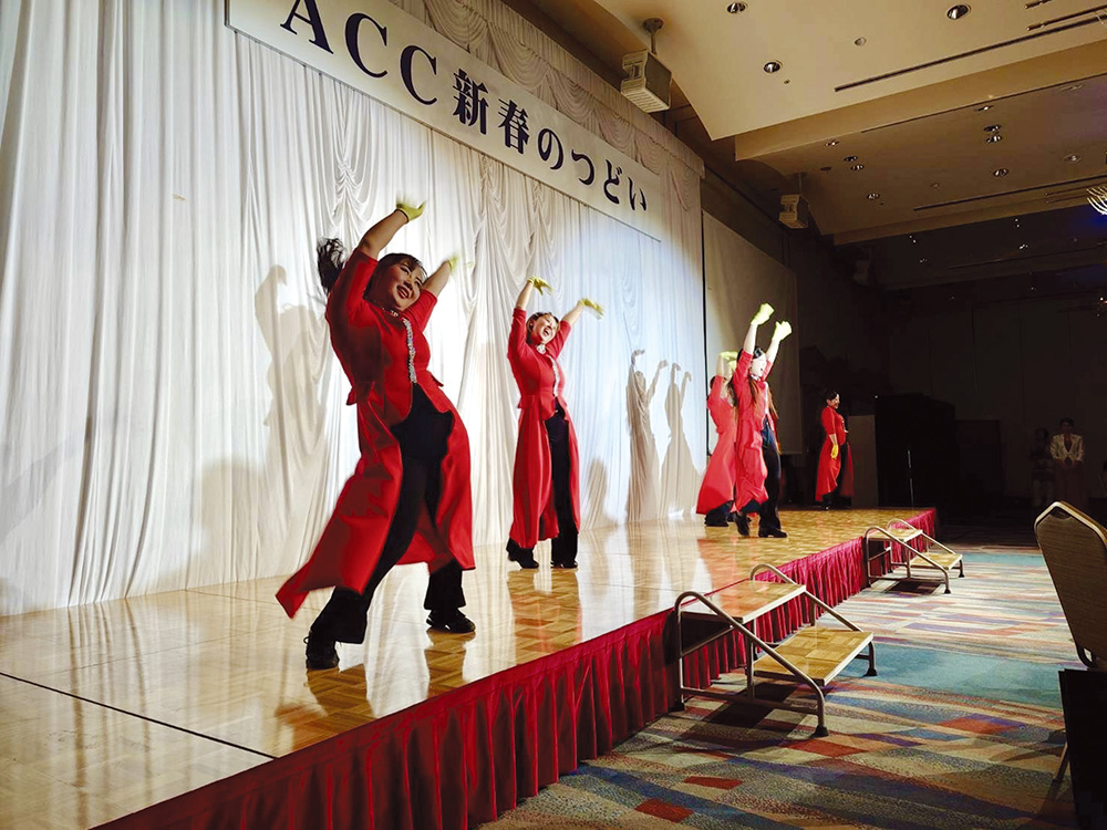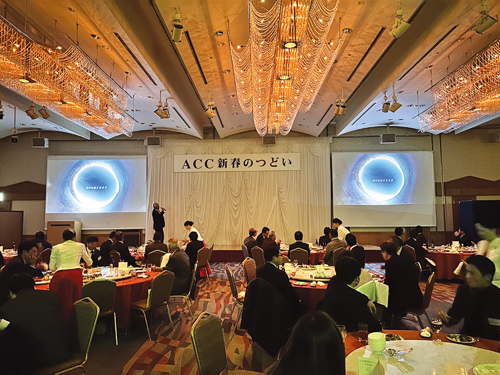 オープニングはKIRARAによるダンス、成田会長の挨拶と続き、丸谷聡子明石市長様、国出拓志明石市議会議長様、西村やすとし衆議院議員様(ビデオレター)にご来賓を代表してご挨拶をいただきました。そして、兵庫県東播磨県民局長 野北浩三様に乾杯のご発声をいただき、華々しく会が繰り広げられました。中盤には谷副会長のドローン撮影2026初日の出と現在閉館中の天文科学館の映像を迫力の大画面でご覧いただき、再びKIRARAのダンスパフォーマンスでお楽しみいただきました。終盤には西村議員ご本人も東京から駆けつけていただき 松尾静男副会長の中締めでお開きとなりました。