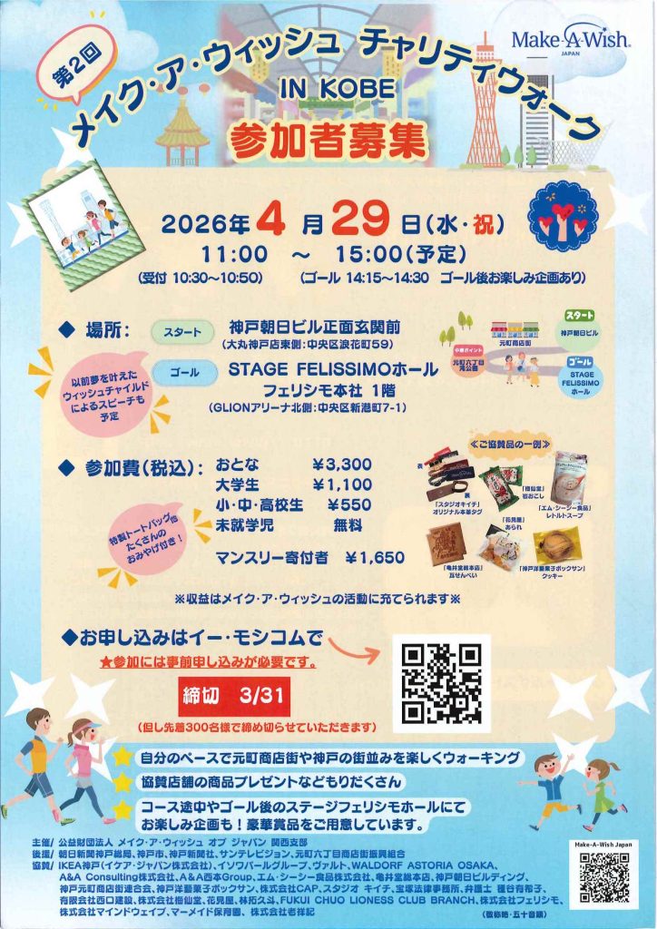 【2026年4月29日】第2回メイク・ア・ウィッシュ チャリティウォークIN KOBE