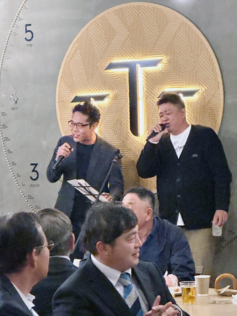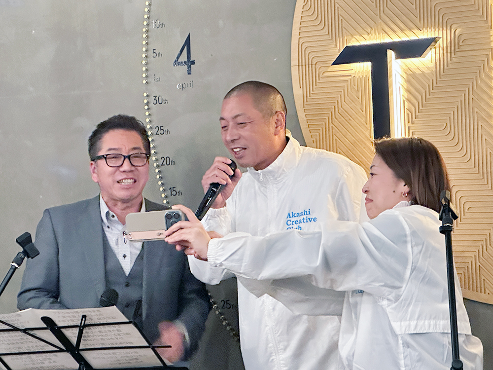雨の中、桜も満開、澄んだ夜の明石公園はとても美しく、今年度から古志親睦委員長を筆頭に親睦委員会も若手に引き継がれ、濵田副委員長の乾杯で華やかな『花見』となりました。恒例のピアノ演奏と会員の熱唱が今年も響き渡り、春の楽しいひとときになりました。最後は井藤圭順副委員長に締めていただき無事お開きとなりました。